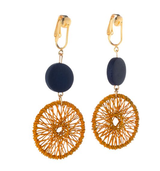 Gold Hollow Woven Circles Clip On Dangling Earrings