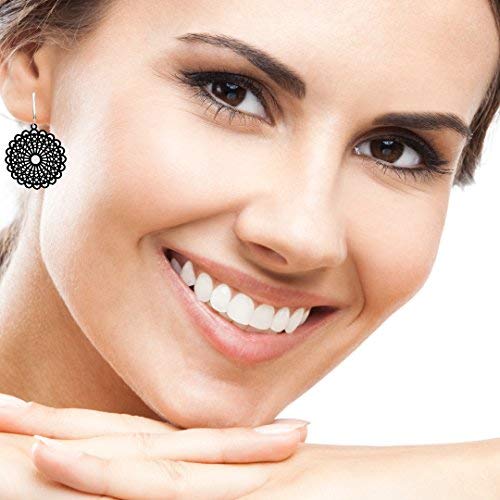 Silver Wooden Round Flower Cutouts Clip On Dangling Earrings