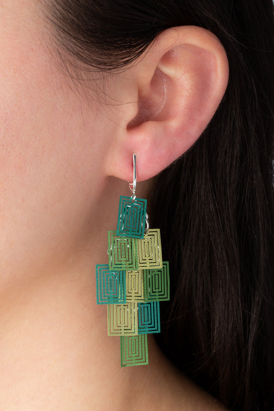 Mother of Pearl Round Layered Clip On Dangling Earrings