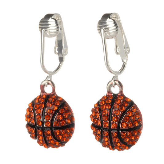 Silver Crystal Basketball Ball Clip On Dangling Earrings