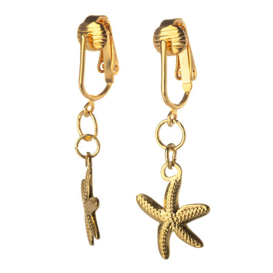 Gold Mardi Gras Star Sequin Tassel Clip On Dangling Earrings