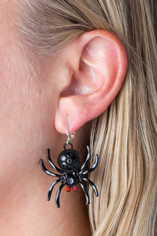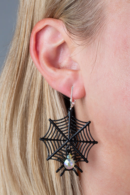 Crystal Spider on Web Silver Clip On Dangling Earrings