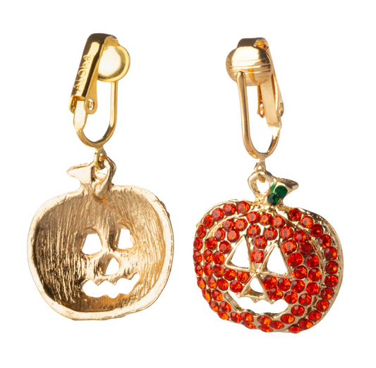 Crystal Jack-O'-Lantern Gold Clip On Dangling Earrings