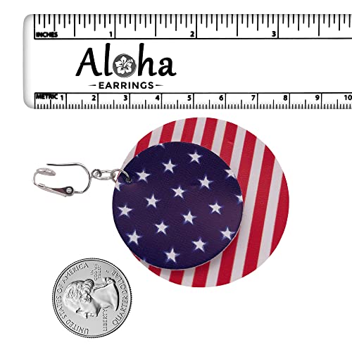 Stars and Stripes Round Layered Clip On Dangling Earrings