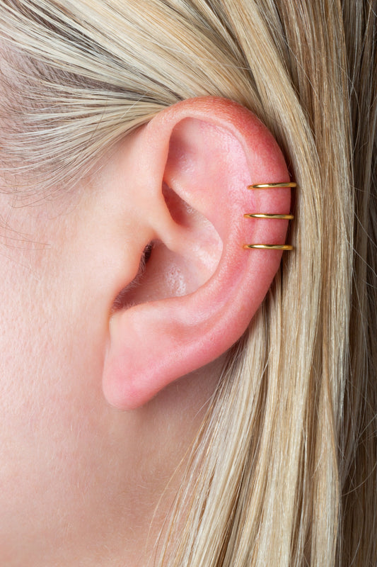 Faux Captive Bead Triple Hoop Non-Piercing Cuff