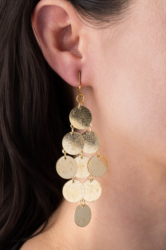 Gold Glitter Round Layered Clip On Dangling Earrings