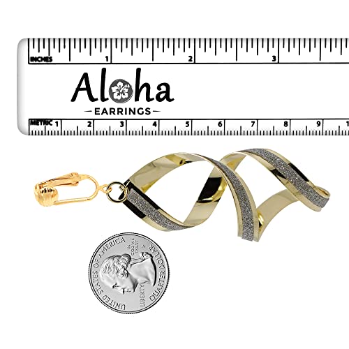Large Gold Sparkle Triple Twist Clip On Dangling Earrings