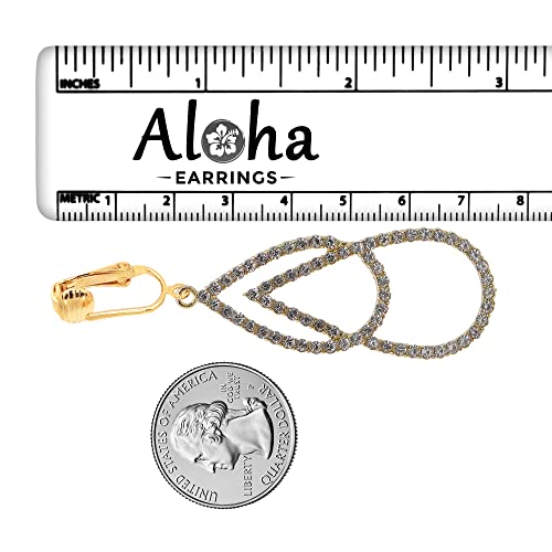 Gold Rhinestone Double Teardrops Clip On Dangling Earrings