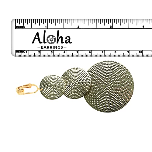 Gold Textured Triple Circle Clip On Dangling Earrings