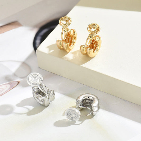 Gold Mosquito Coil Clip On Double Hoop Earrings