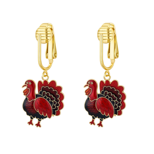 Gold Triple Flowers Mosquito Coil Clip On Dangling Earrings