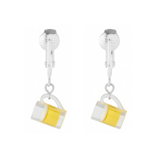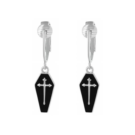 Coffin Silver Clip On Dangling Earrings
