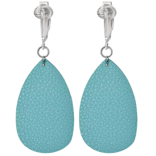 Faux Leather Teardrop Shaped Clip On Dangling Earrings
