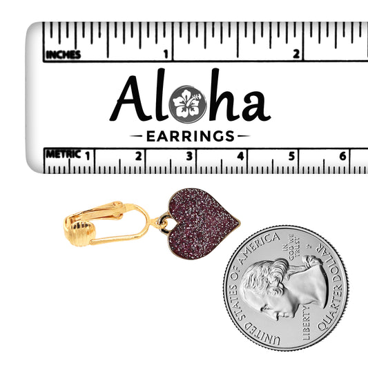Purple Sparkle Hearts Clip On Dangling Earrings
