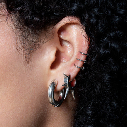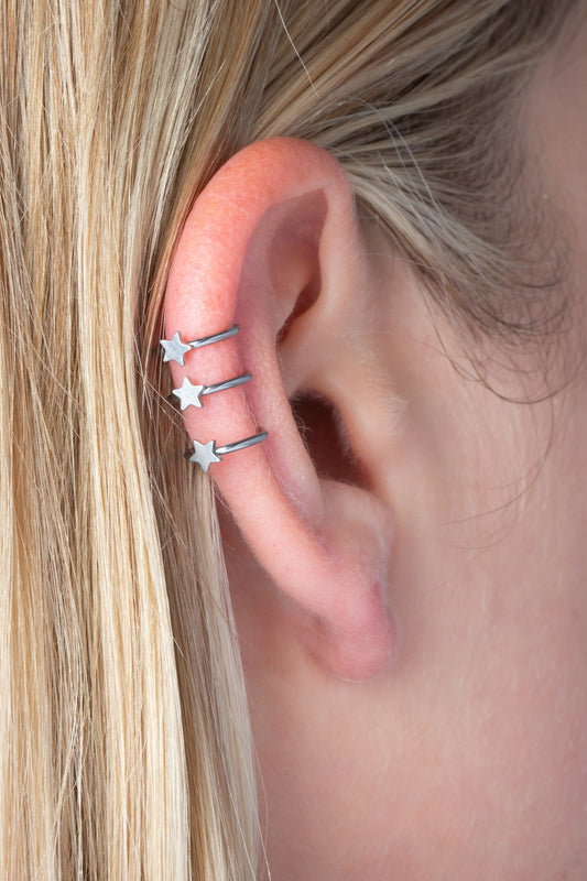 Faux Captive Bead Triple Hoop Non-Piercing Cuff
