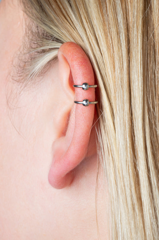 Faux Captive Bead Double Hoop Non-Piercing Cuff