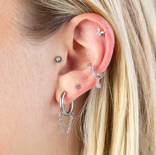 CZ Crystal Lined Chain with Dangling Gem Non-Piercing Adjustable Ear Cuff
