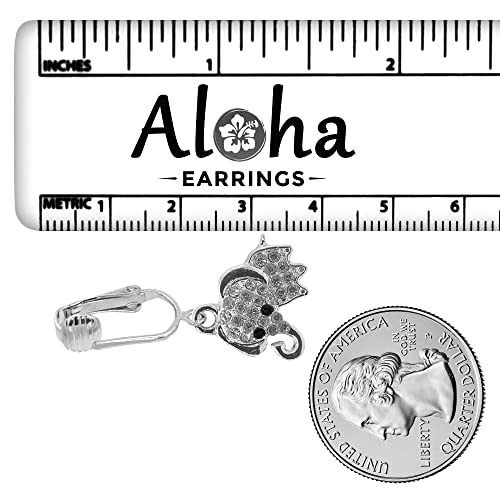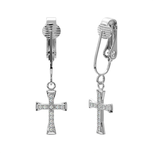 Silver Crystal Paved Cross Clip On Dangling Earrings