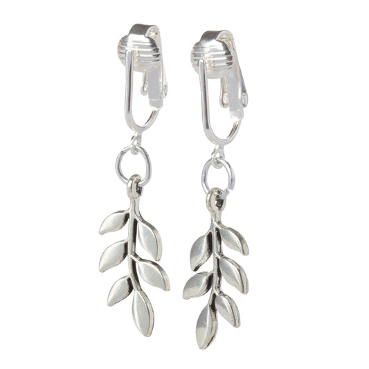 Silver Multi Beaded Chain Clip On Dangling Earrings