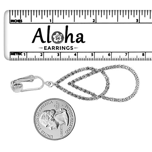 Silver Rhinestone Double Teardrops Clip On Dangling Earrings