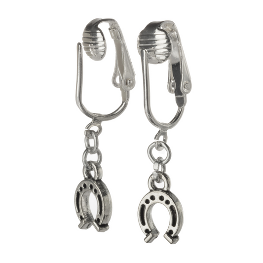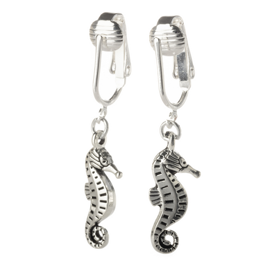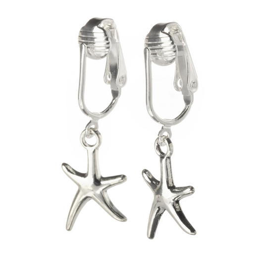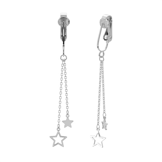 Silver Double Chains with Star Ends Clip On Dangling Earrings