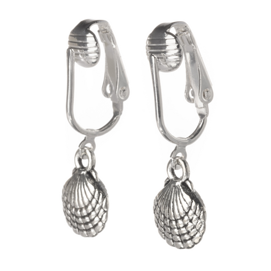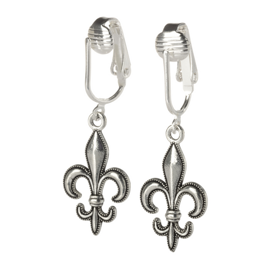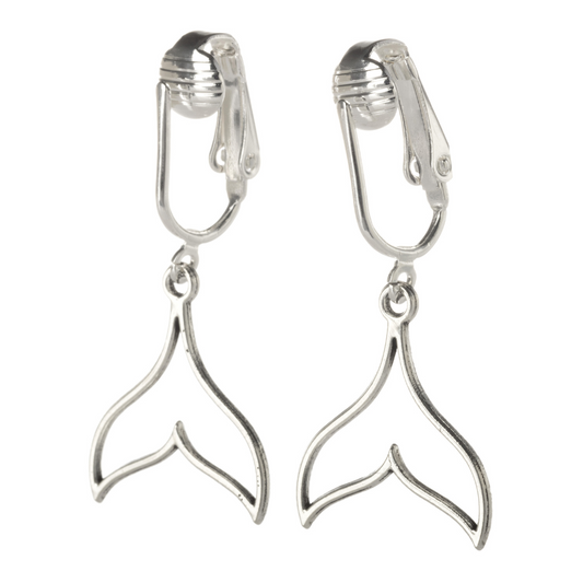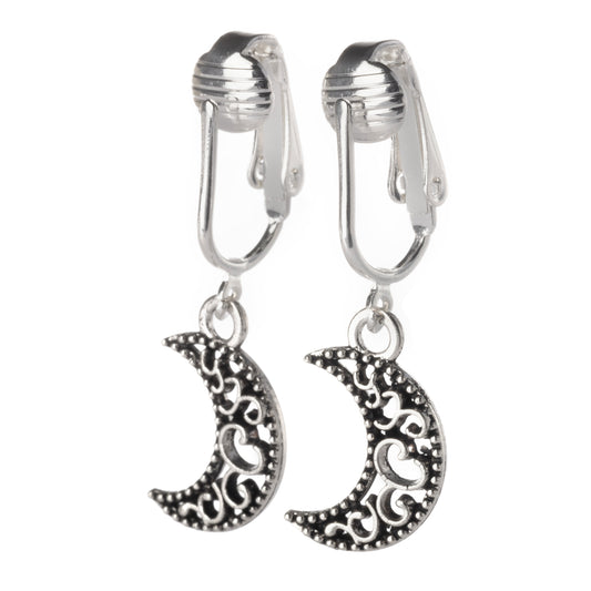 Silver Hollow Curved Filigree Clip On Dangling Earrings