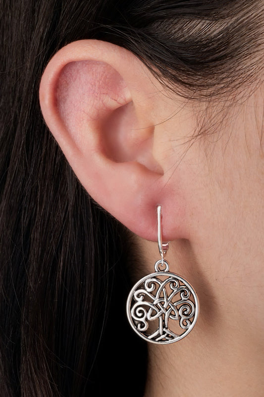 Silver Celtic Tree of Life Clip On Dangling Earrings