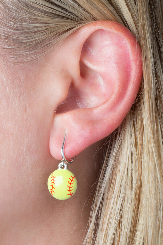 Silver Crystal Baseball Ball Clip On Dangling Earrings