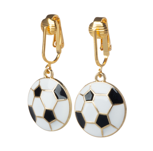 Silver Crystal Soccer Ball Clip On Dangling Earrings