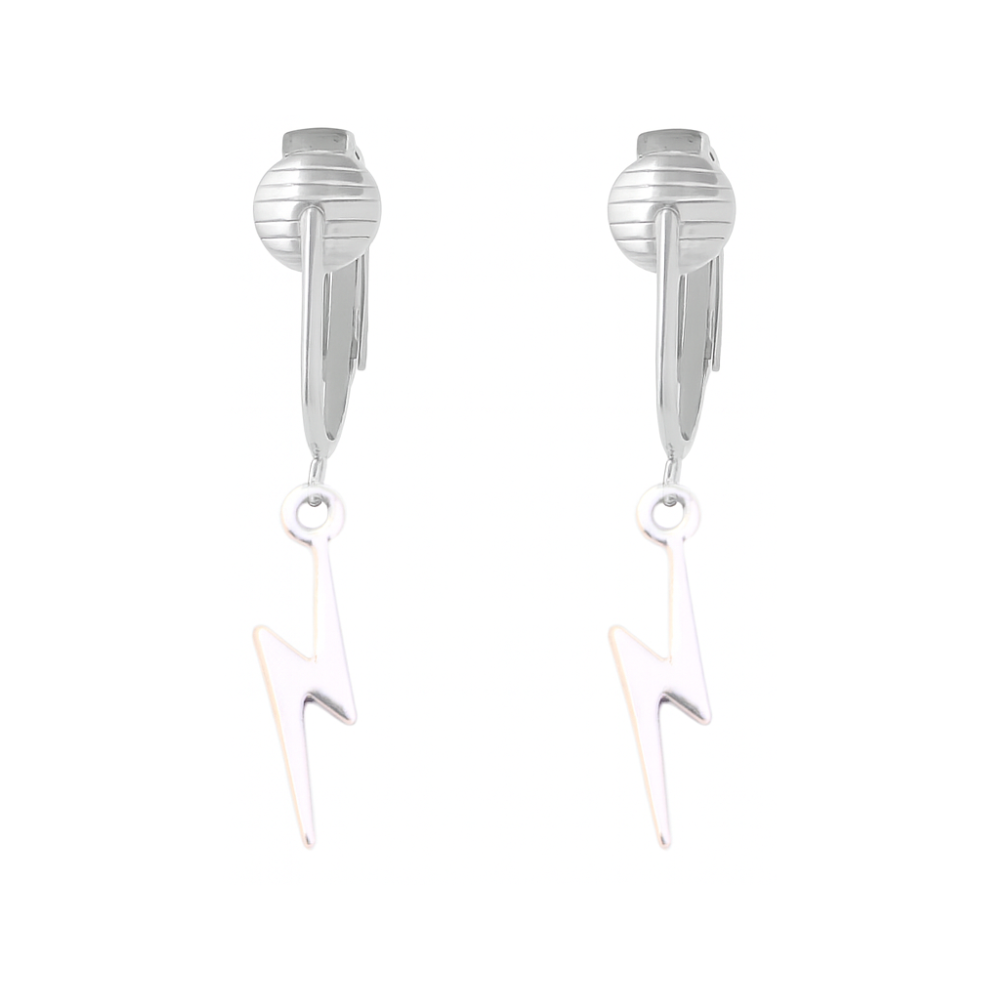 Silver Lightning Bolt Clip On Dangling Earrings