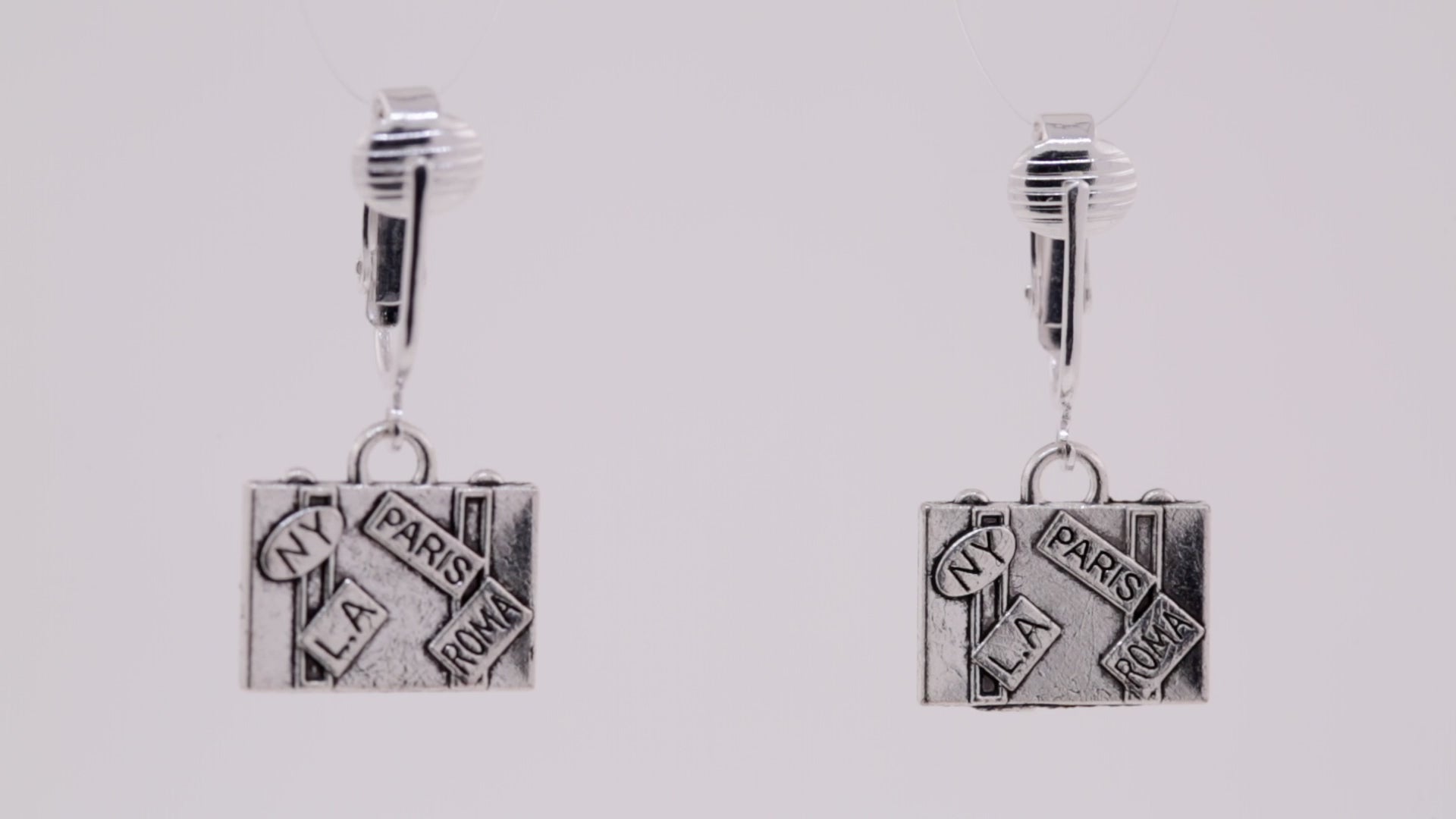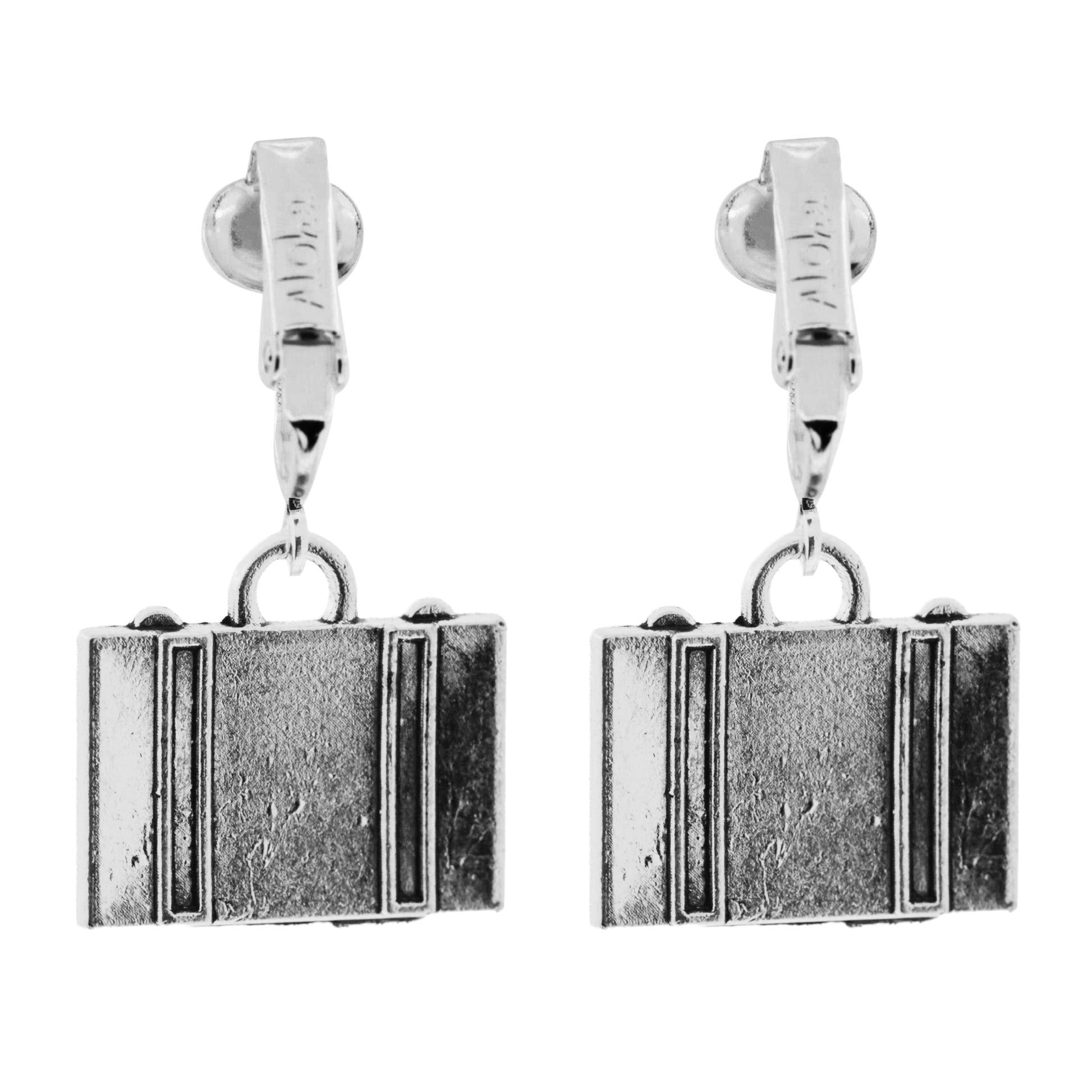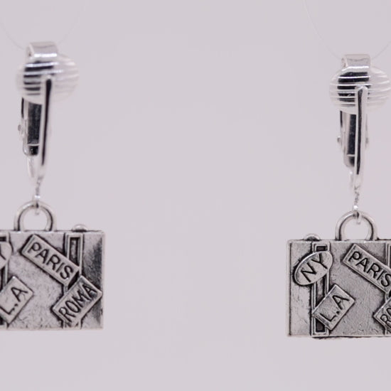 Silver Suitcase Clip On Dangling Earrings